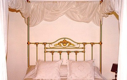 Cama de 2 plaza mod.156 con piecera recta y baldaquino